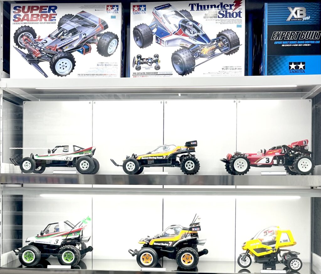 続いてRCモデルの展示スペースへ。ここには、タミヤRCカーの歴史を彩る名車たちがずらりと並んでいます。
