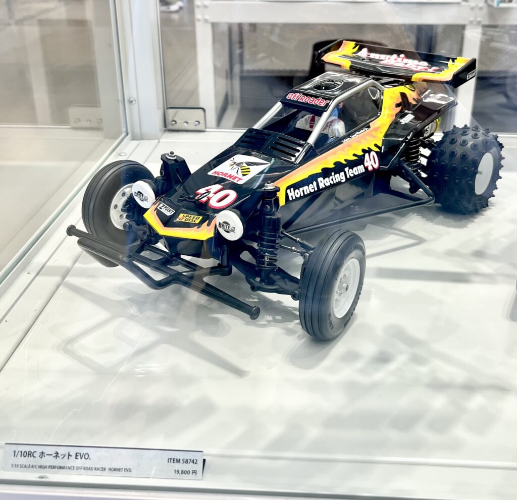 前回訪れた際には気づきませんでしたが、とても魅力的な新製品が2台展示されていました。「ホーネット EVO」とDT-04シャーシ採用の「ファイターNXGEN」です。