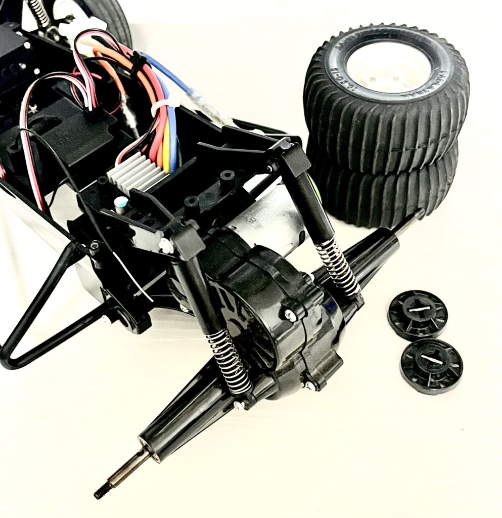 リアのホイール装着には六角ハブ化が必要です。マイティフロッグ用のパーツを流用します。