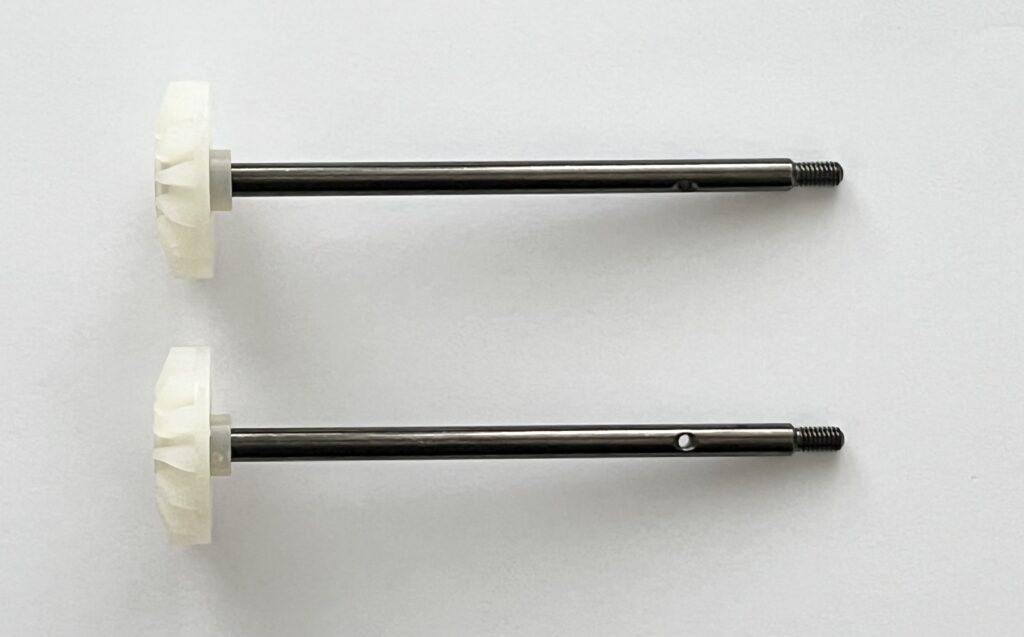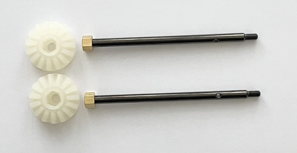 Apply some grease and slide the gears onto the shafts. With that, the rear shafts are ready.