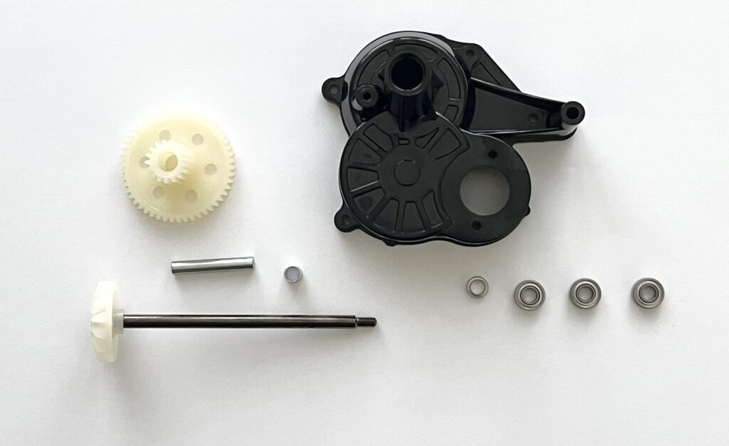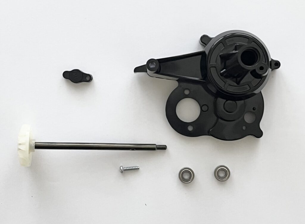 Next, we’ll install the shaft into the gearbox, starting with the left side. This is where we’ll introduce our first upgrade part.
