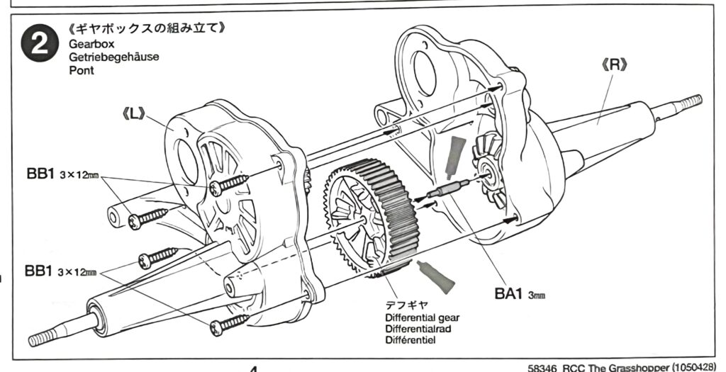 Tamiya Grasshopper Build Diary Vol. 3:Assembling the Rear Shaft and Differential Gear