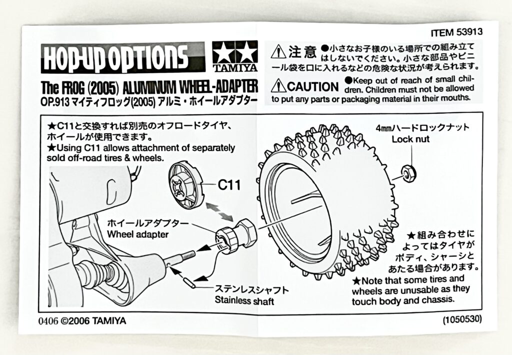 - OP-913 The FROG (2005) Aluminum Wheel Adapter