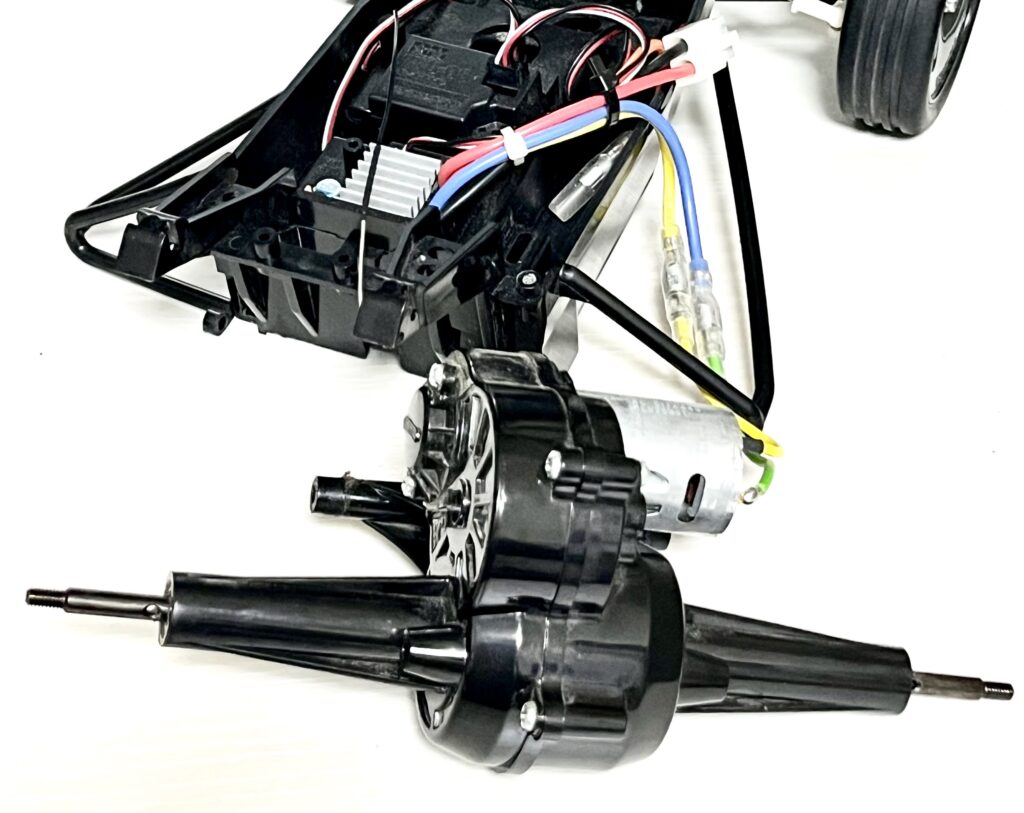 Next, to replace the rear stay, the entire gearbox assembly must be detached from the chassis.