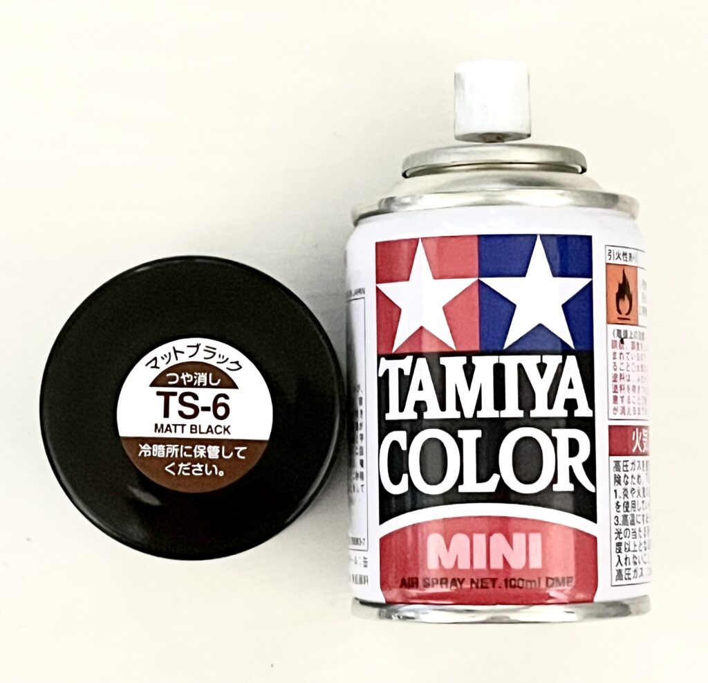 To achieve our desired look, we’re painting the wheels with Tamiya’s TS-6 Matt Black spray paint.