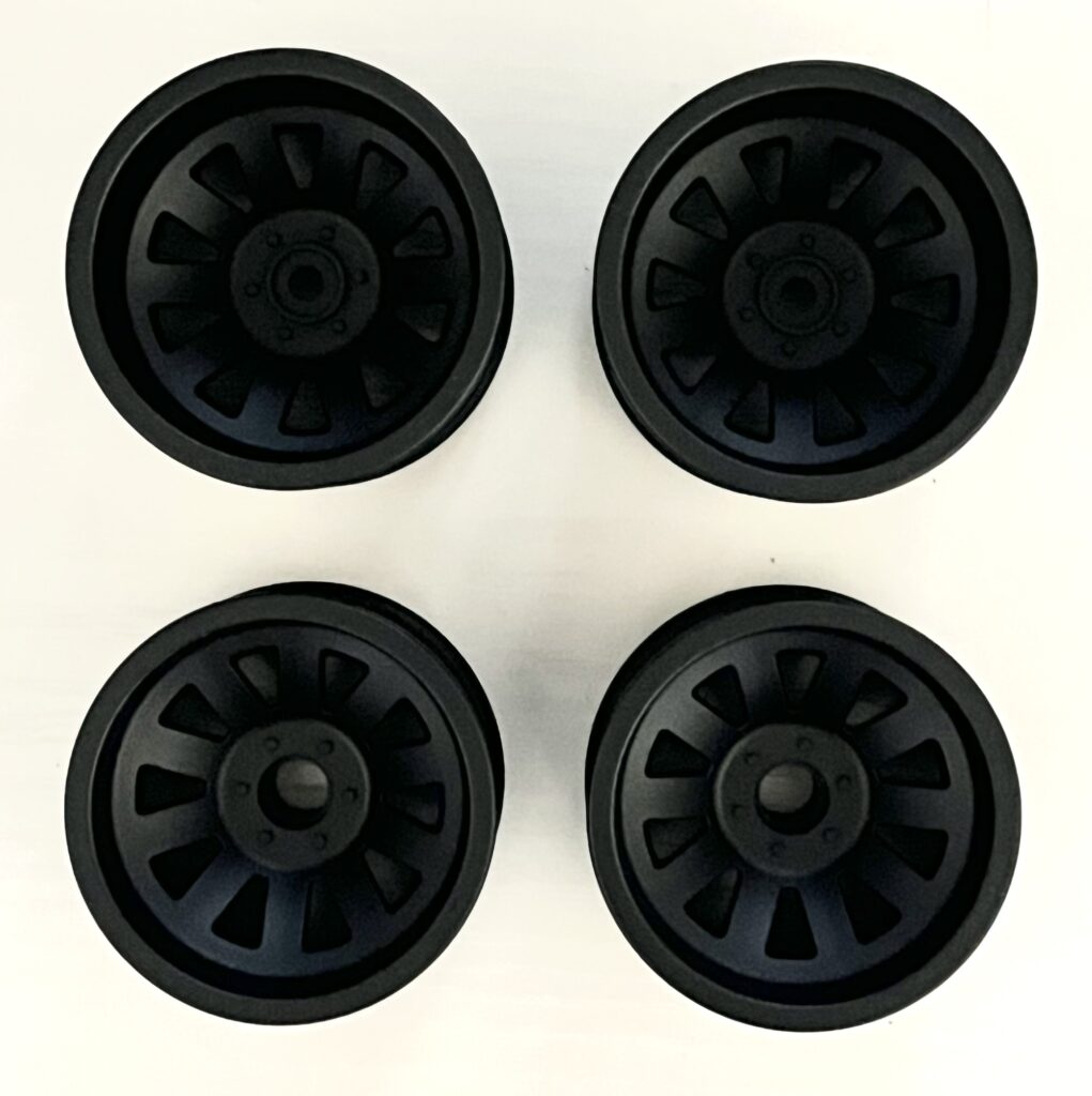 ▼ The wheels after painting. The matt black finish gives them a much more aggressive appearance.